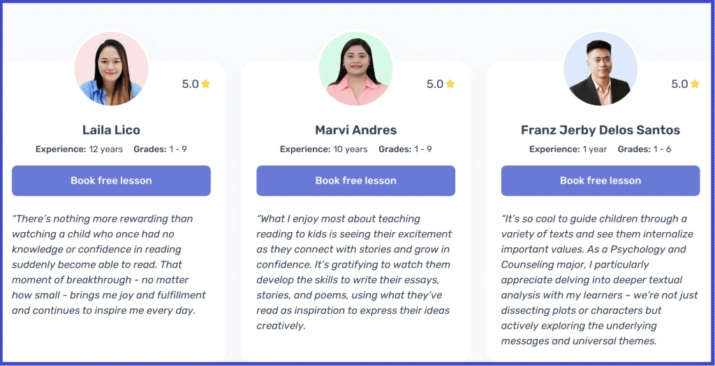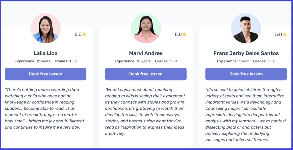 Brighterly reading tutors are the main trump card of this service. When passing their application process, each potential candidate undergoes rigorous testing to prove that they are experienced and well-versed enough to meet the highest quality standards. However, having a personalized teaching methodology isn’t the only requirement here.