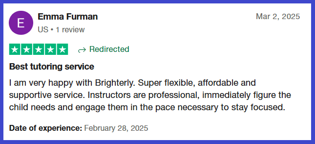 Having a top-grade teaching team is one thing. However, ensuring that all processes are launched effectively to achieve maximum results is another key aspect. Brighterly excels in both. Here’s just one review verifying the satisfaction with this learning venue: