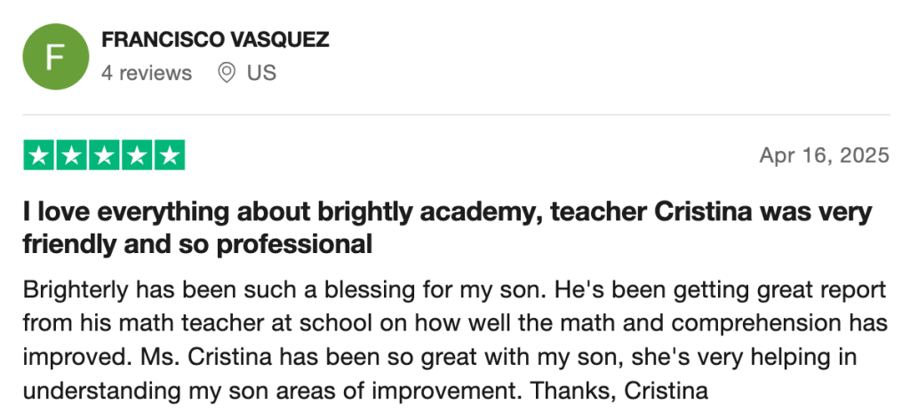 Unlike Huntington Learning Center, Brighterly doesn’t overpromise and underdeliver. Many parents have highlighted that the platform met their children’s needs, whether it’s an increase in grades, improved confidence or paying more attention to math.