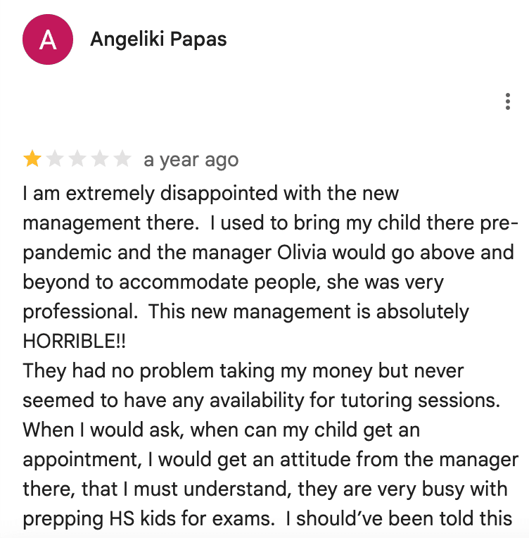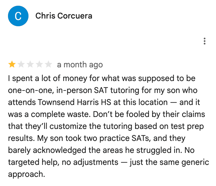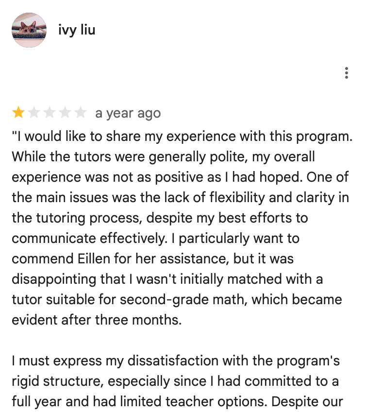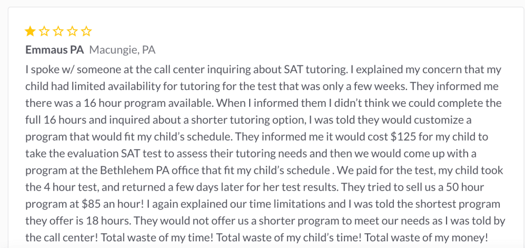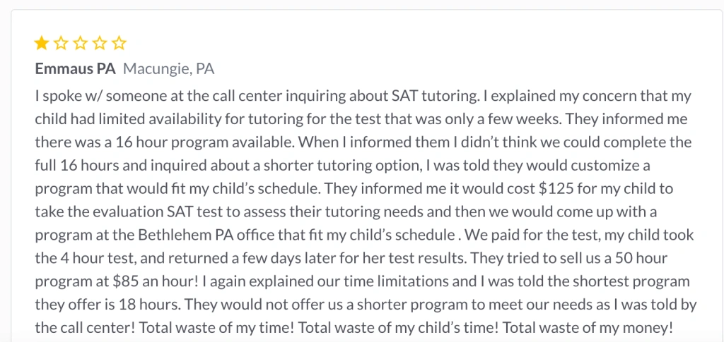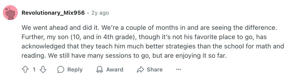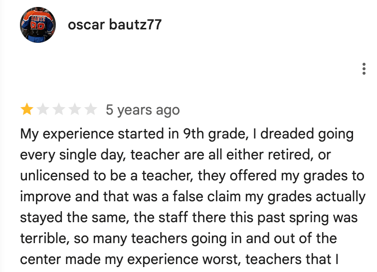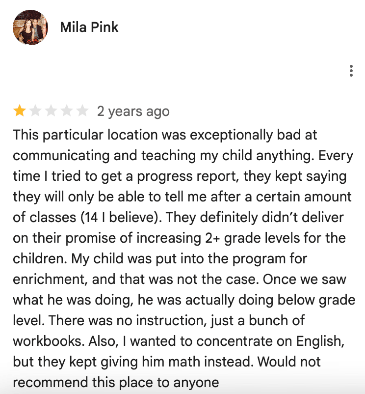 “They definitely didn’t deliver on their promise of increasing 2+ grade levels for the children… Once we saw what he was doing, he was actually doing below grade level.” – Google Review