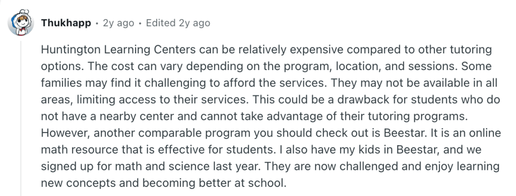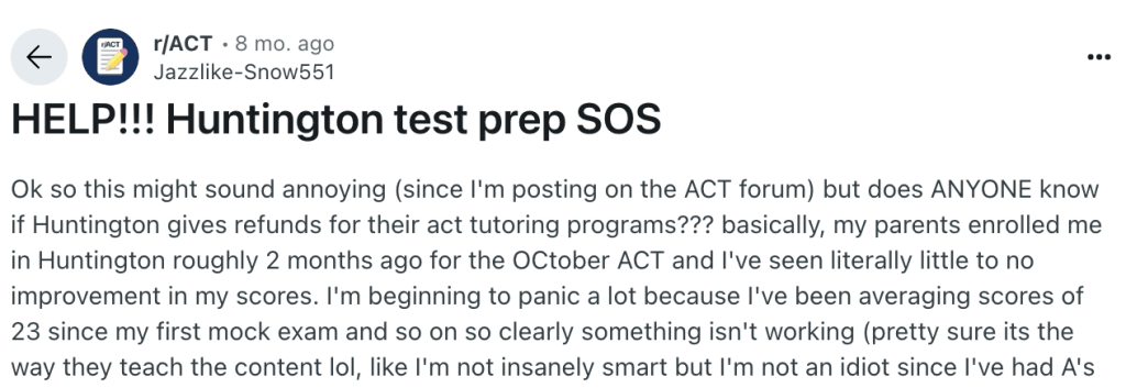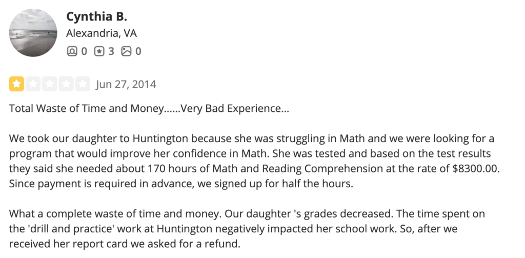 Some students in Huntington Learning Center reviews on Reddit have also expressed concerns about the fact that their grades have not improved.