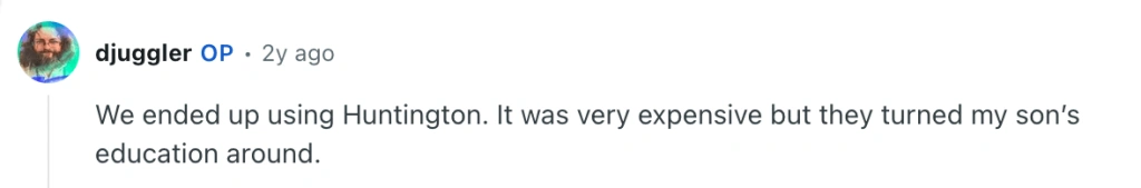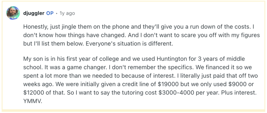 The reviews on whether or not it’s worth the price are mixed. Some acknowledge that while Huntington Learning Center is expensive, it is worth it for the results. Others, especially those who didn’t see the results they were promised, don’t see the value in it.