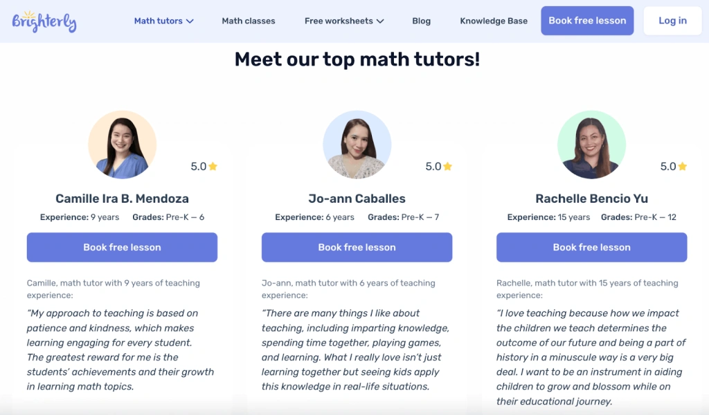 Brighterly math tutors are some of the best. They must undergo a thorough review process before they’re able to work with Brighterly, ensuring they have the right skills, attitude and qualifications.