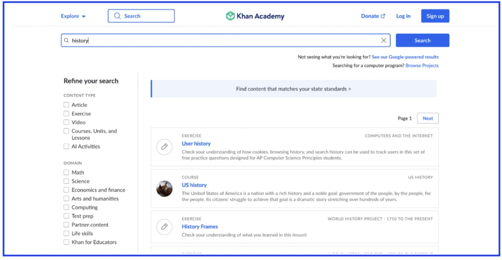 One of the first things that I noticed, and why Khan Academy is bad, is that there is no real interactivity. Think quizzes, exercises, tests, and interactive elements – all absent on the platform. Naturally, some students may find the content repetitive or not engaging enough to hold their attention long-term. Kids get bored, and what happens when they are bored? They tune out and give up.