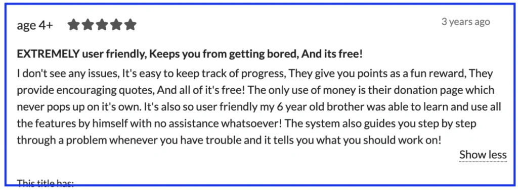 ⭐️Most Khan Academy reviews don’t talk about UI, but I haven’t found a single bad review saying the platform’s usability is frustrating. I’d rate this feature as 10/10.