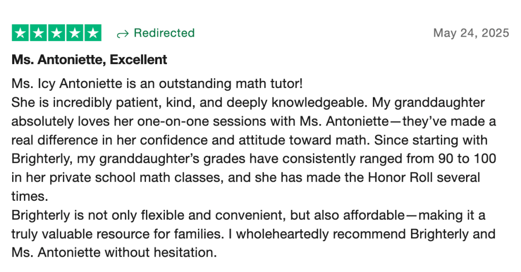 Based on Trustpilot reviews, parents find Brighterly tutors extremely helpful for children who struggle with math. Most of them notice how kids are getting to love their regular tutoring sessions and improving their academic performance significantly, thanks to them.