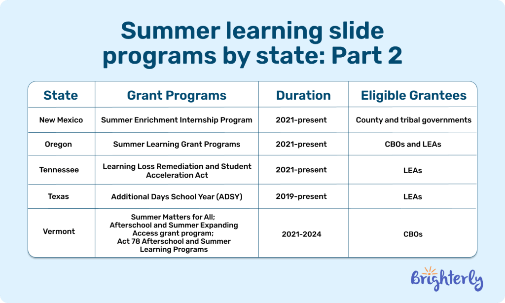 Tennessee, Texas, and Vermont have adopted five key strategies to effectively address summer learning slide: