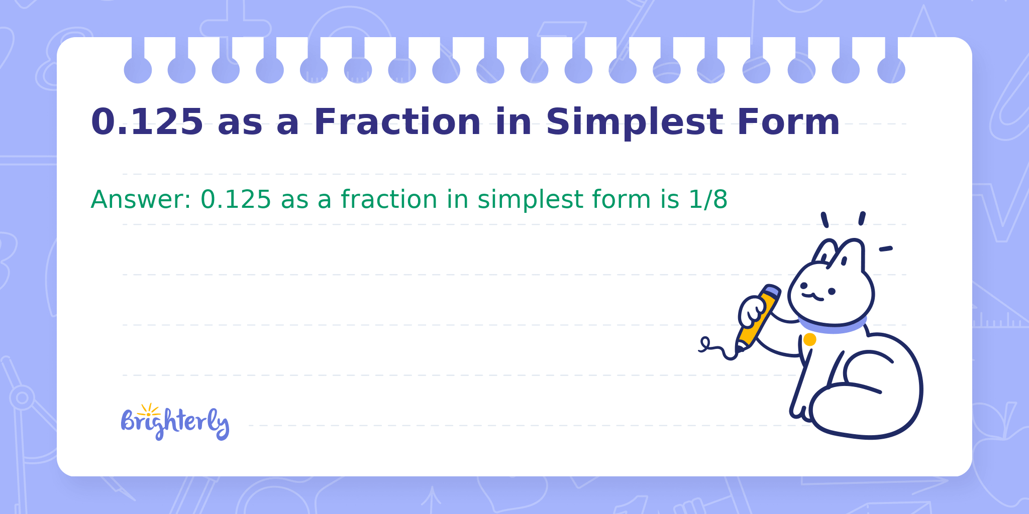 Answer: 0.125 as a fraction in simplest form is 1/8