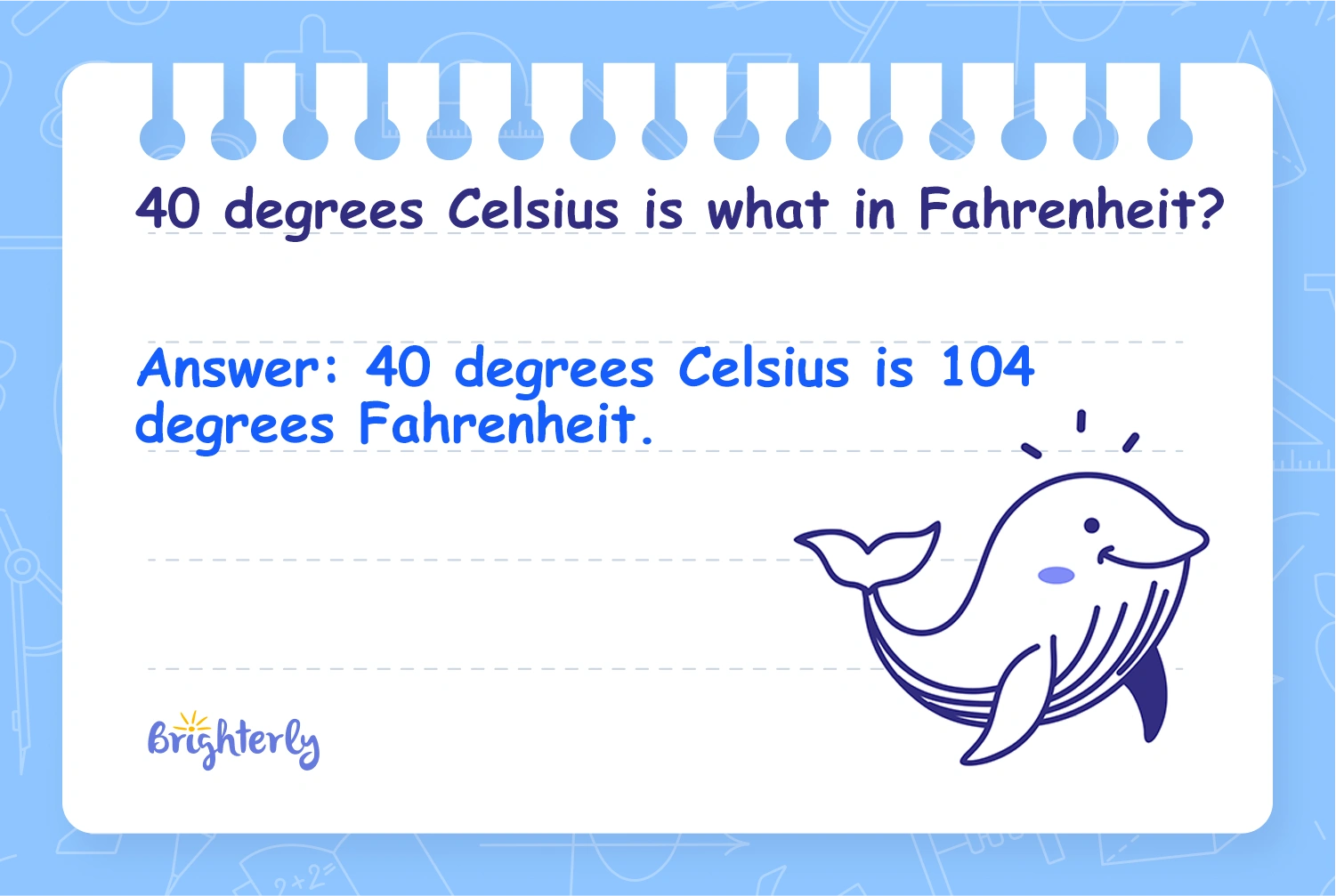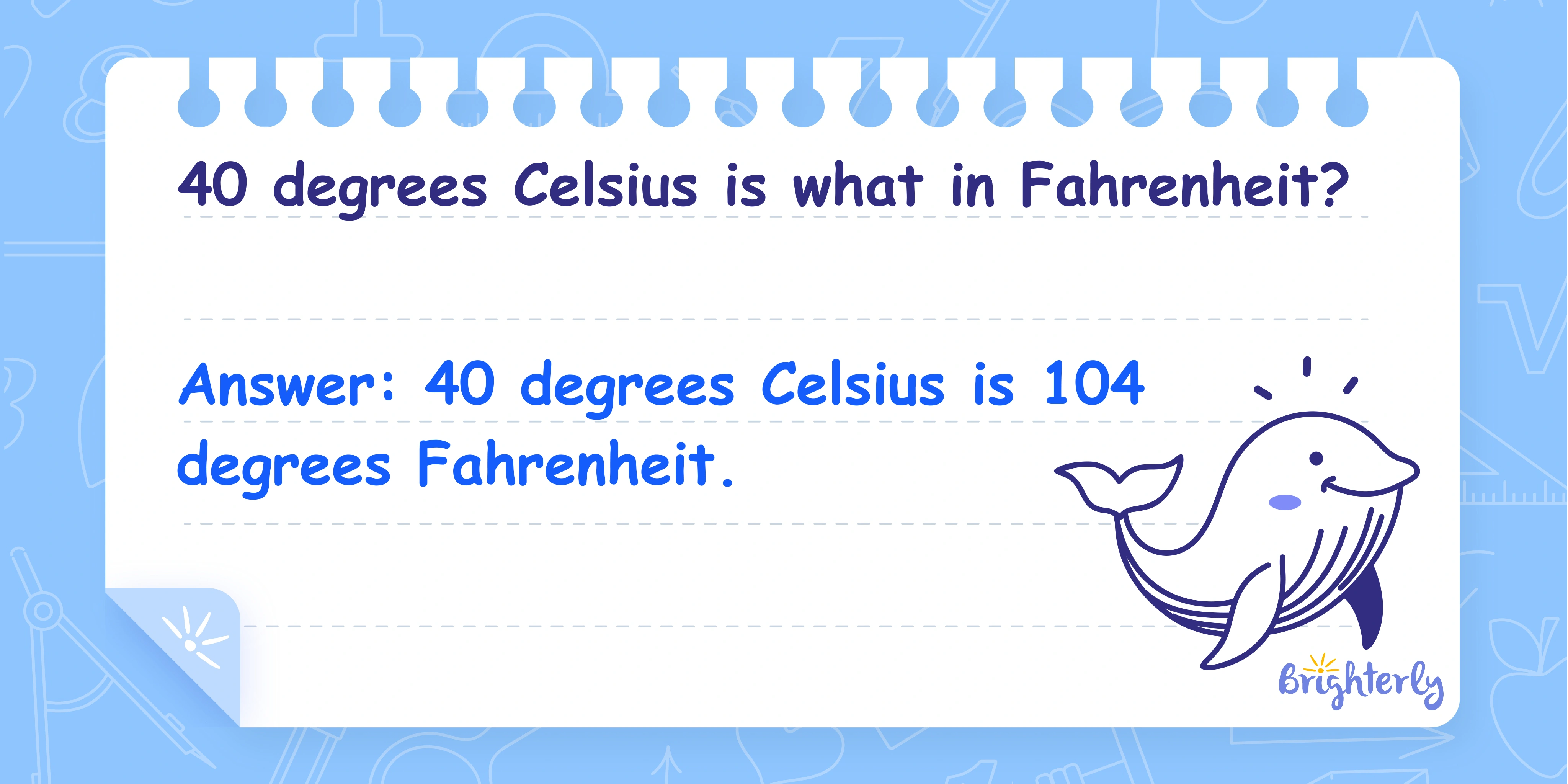 Answer: 40 degrees Celsius is 104 degrees Fahrenheit