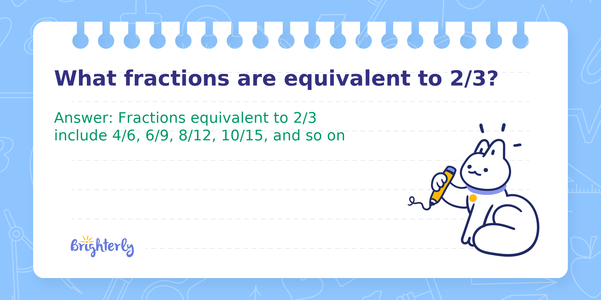 Answer: Fractions equivalent to 2/3 include 4/6, 6/9, 8/12, 10/15, and so on