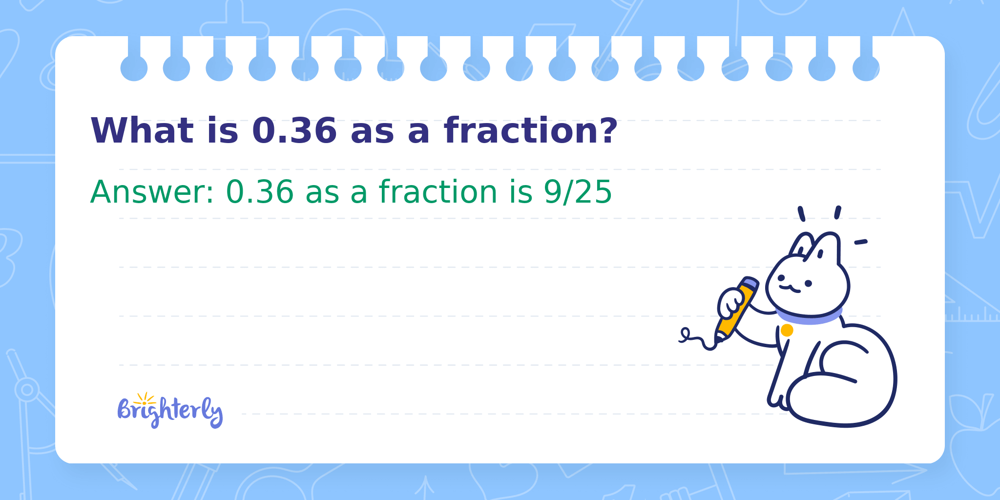 Step 1: Step 1: Recognize that 0.36 means 36 hundredths, or 36/100