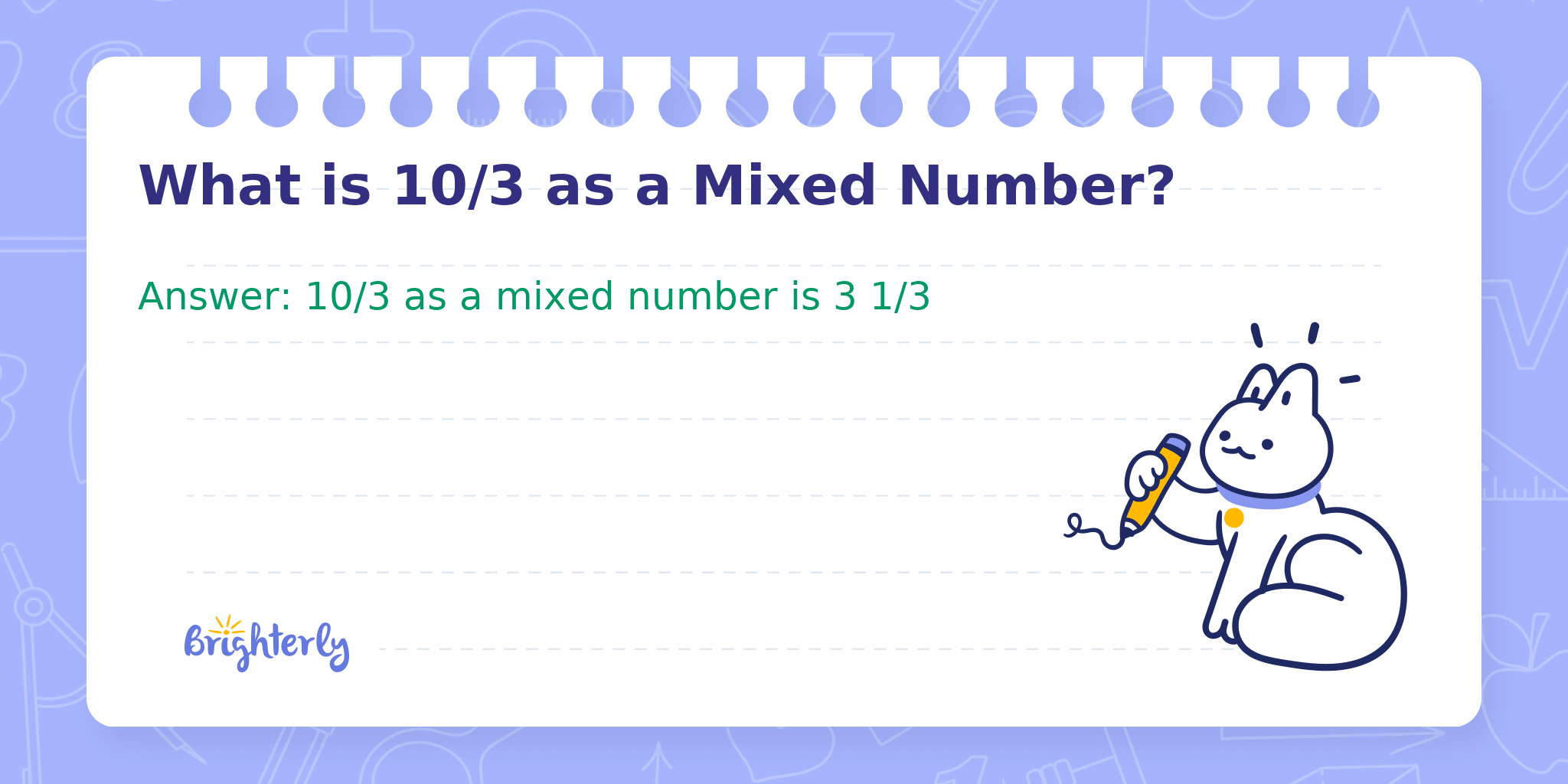 Converting an improper fraction like 10/3 into a mixed number allows us to understand just how many whole parts and leftover parts the fraction represents. A mixed number consists of a whole number and a proper fraction. This process provides a more intuitive interpretation of fractions greater than one.