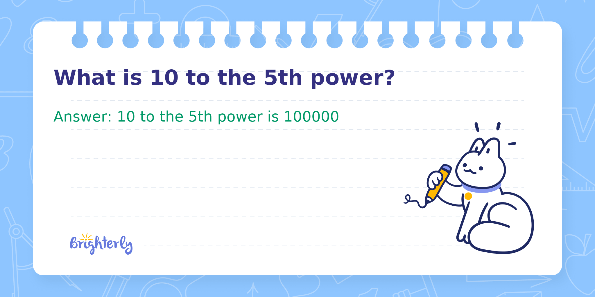 Answer: 10 to the 5th power is 100000