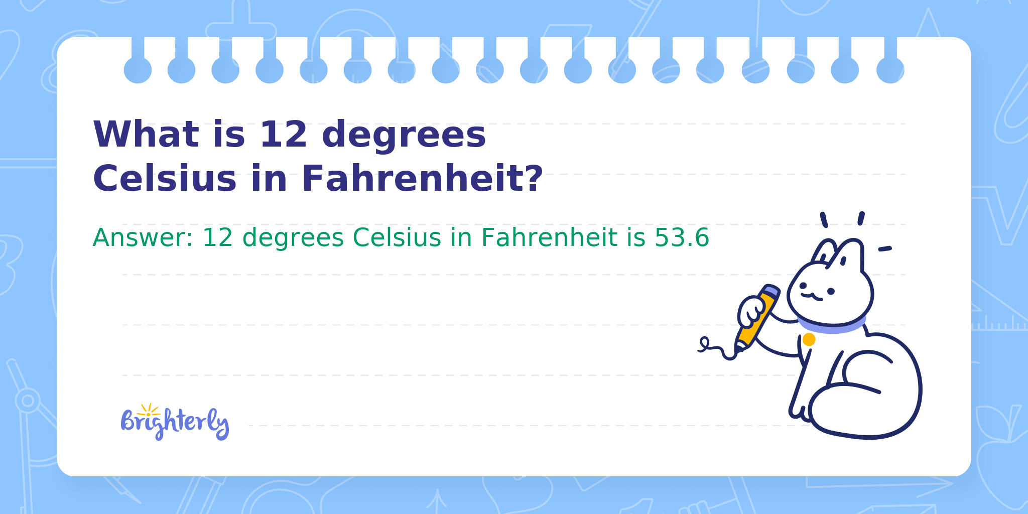 Answer: 12 degrees Celsius in Fahrenheit is 53.6