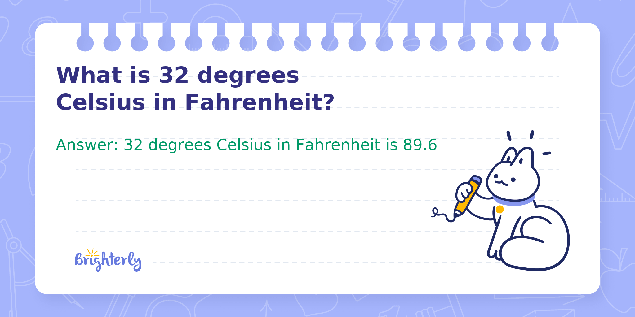 Answer: 32 degrees Celsius in Fahrenheit is 89.6