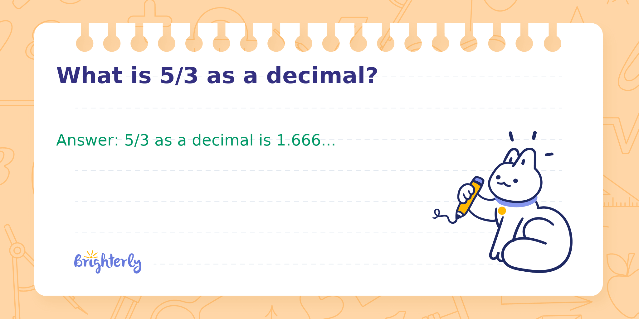 Fractions like 5/3 can be converted into decimals by dividing the numerator by the denominator. This conversion helps to understand fractions in a different form, often useful for calculations, measurements, or comparisons. For improper fractions (where the numerator is greater than the denominator), the resulting decimal will be greater than 1 and may be repeating.