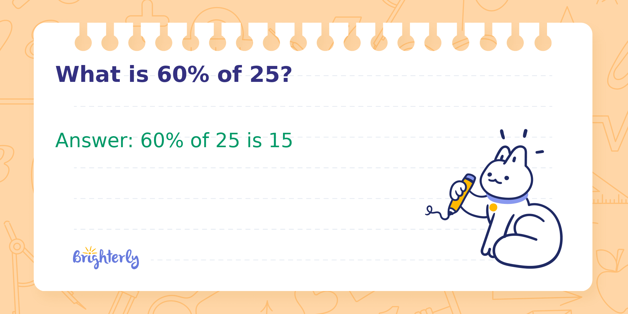 Finding a percentage of a number means determining how much that percentage is when applied to the given value. In this case, we're looking to find out what 60% of 25 is, which is a common calculation both in math problems and real-life scenarios like finding sale prices or test scores.