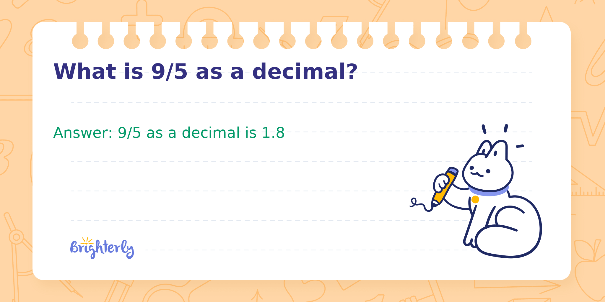 The most straightforward way to convert 9/5 to a decimal is by dividing the numerator (9) by the denominator (5).