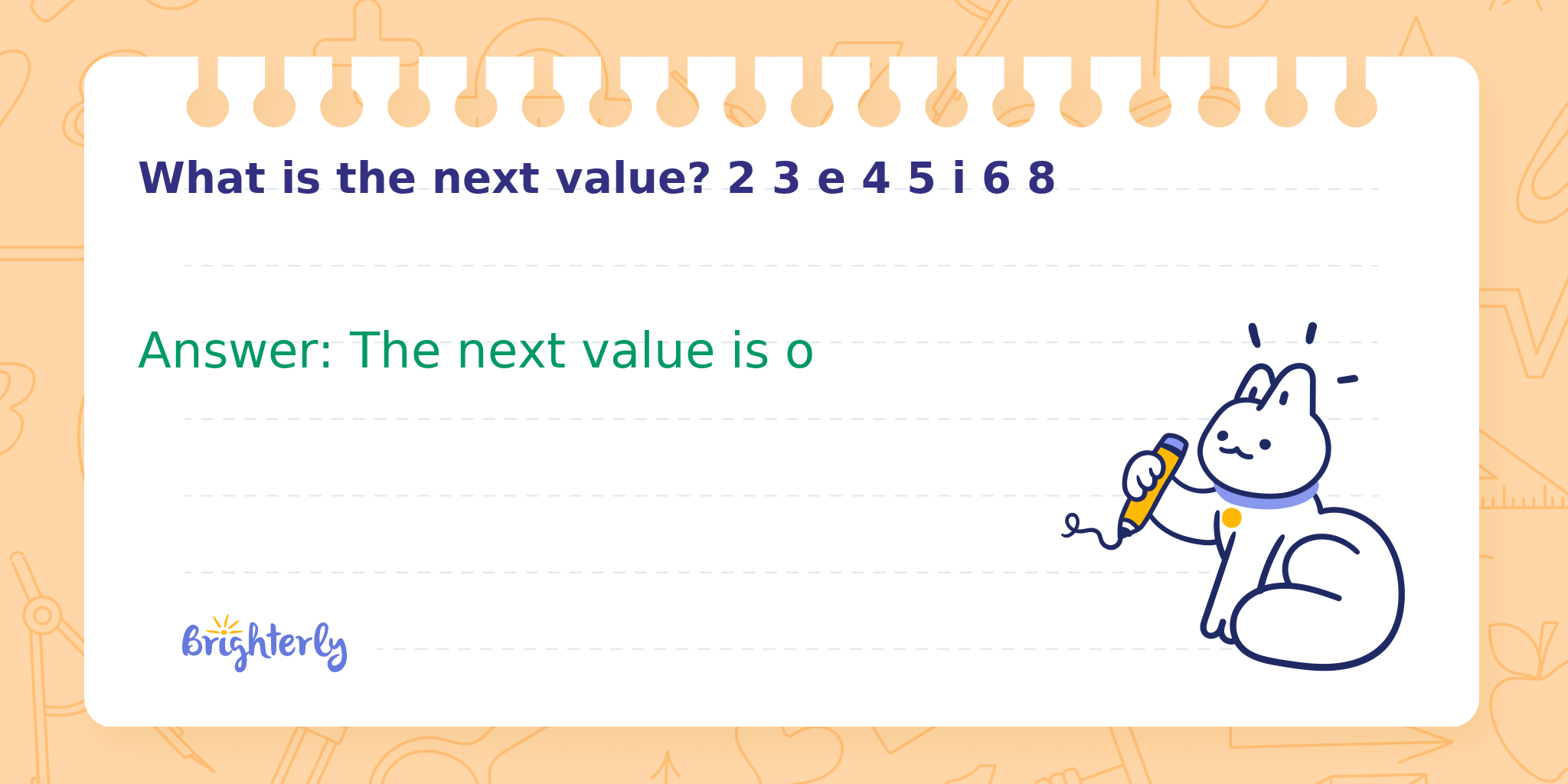 This sequence alternates between numbers and lowercase vowels. Recognizing the pattern will allow us to identify what comes next in the list. Let's examine the rule and deduce the missing value.