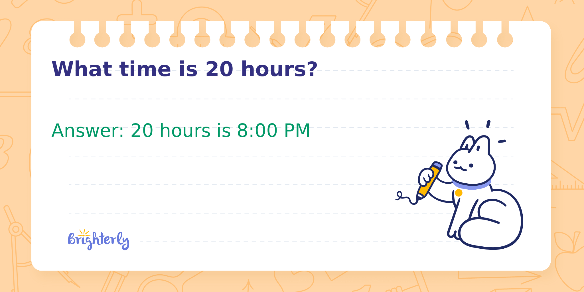 Answer: 20 hours is 8:00 PM