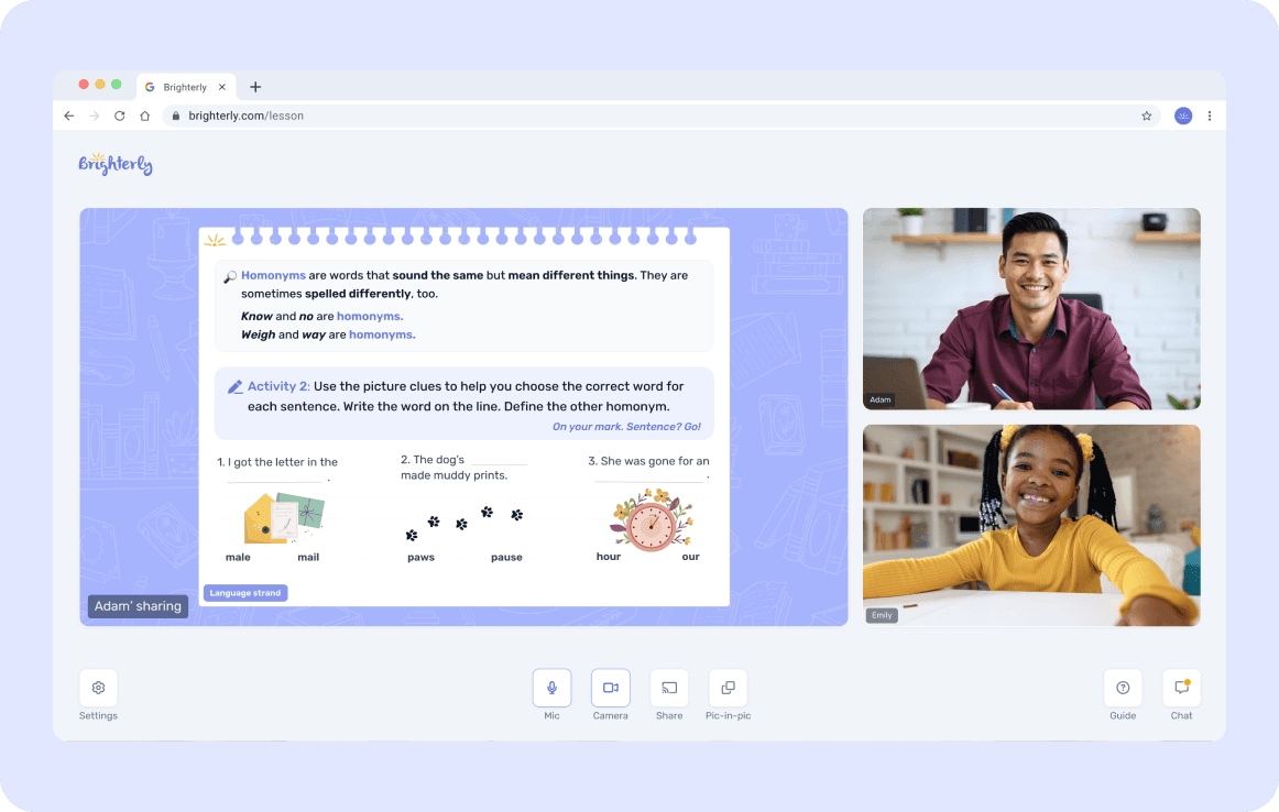 Our reading classes are designed to match your child’s grade level and learning pace. Brighterly’s reading comprehension programs focus on core literacy skills like vocabulary development, story analysis, and critical thinking.