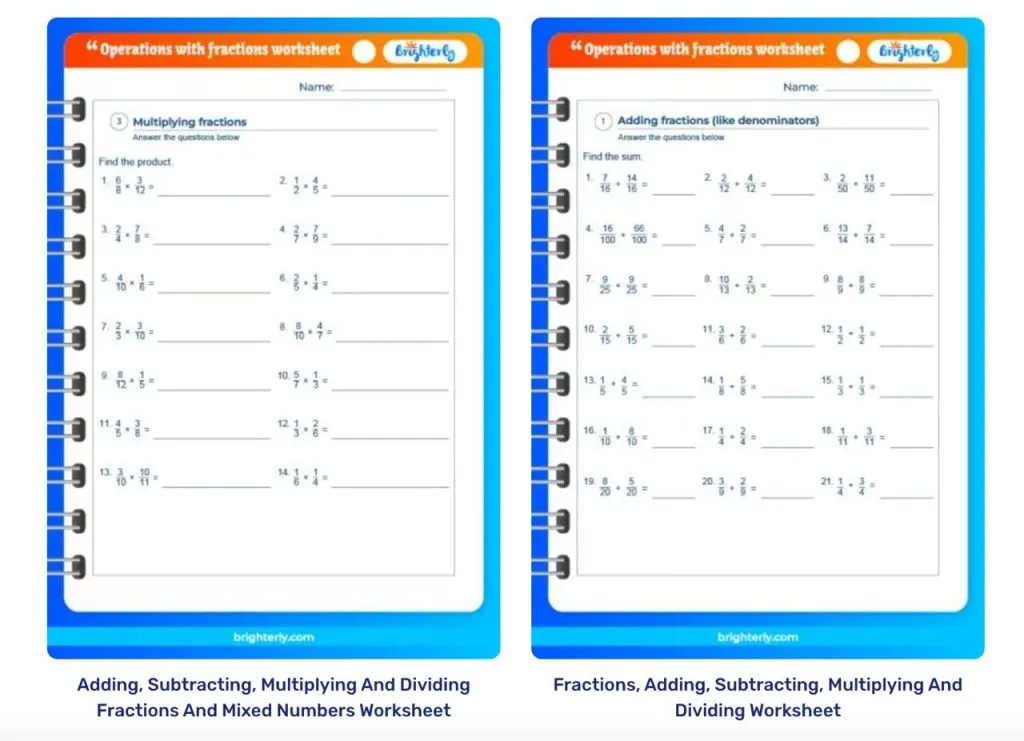 Adding, subtracting, multiplying and dividing fractions worksheet – benefit #1: targeted learning of each operation