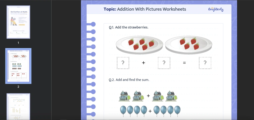 If you’re looking to engage your kindergarten child in math and addition, look no further than Brighterly’s addition with pictures worksheets.