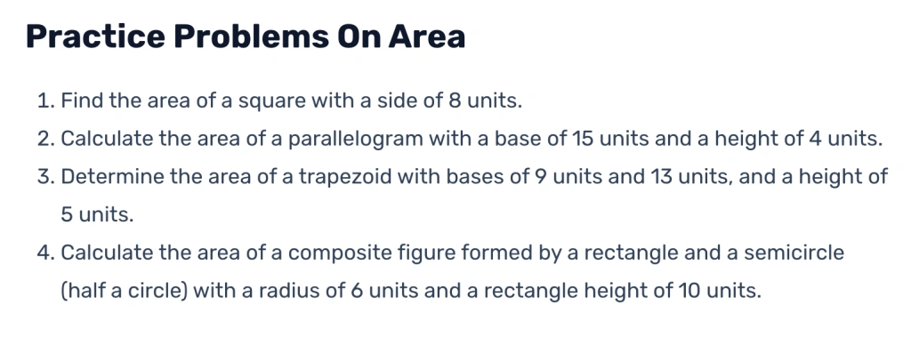 Note: Solid knowledge of area measurement is necessary because one may need it in numerous fields like landscaping, architecture, engineering, art, and even sports.
