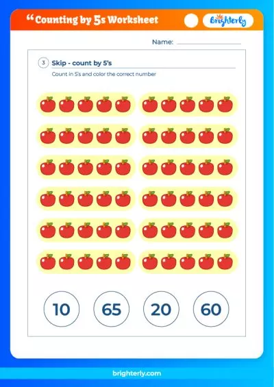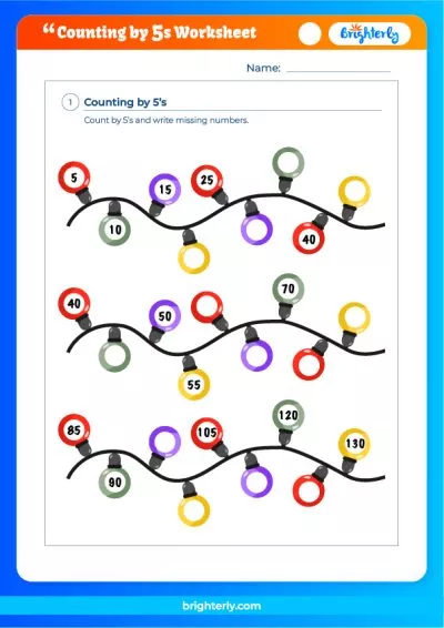 Brighterly’s count by 5s worksheet is an essential resource for tutors and students. Tutors use it for class activities; in the same vein, students can use worksheets to learn independently.