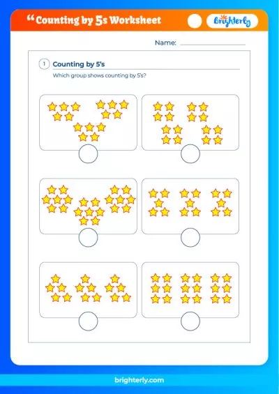 A printable worksheet from Brighterly that lets students count by five is easy to download and print, which makes it accessible for kids and students. The sheets come with answers to questions, making it easier for kids to know when they get a question wrong. Because the worksheet is printable, parents can get new ones if their kids lose or tear them while learning independently.