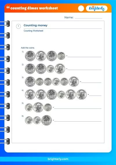 Using counting dimes worksheets for kindergarten is a hands-on learning experience, which is one of the tool’s advantages. Both adults and children can physically count the dimes, which strengthens their comprehension of the value of each dime and helps them develop their fine motor skills.