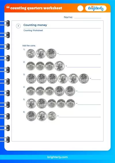 Another benefit of the quarter counting worksheet is that it provides immediate feedback. Students can compare their answers to the correct ones on the worksheet after completing each problem. It allows them to identify areas requiring additional practice as they observe the process.