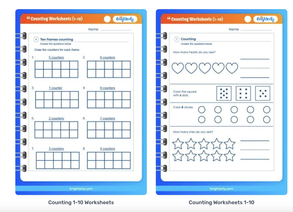 Brighterly’s counting to 10 worksheets come in downloadable PDF format that supports offline usage.