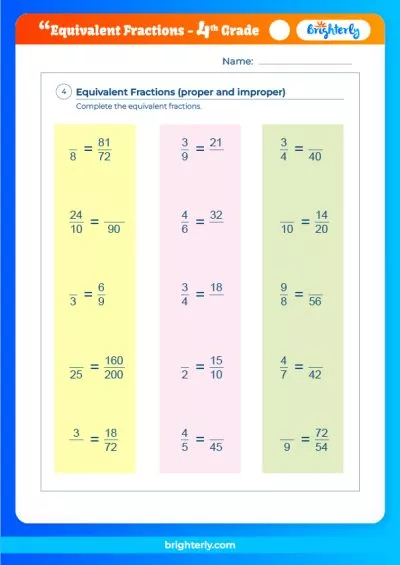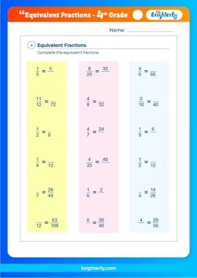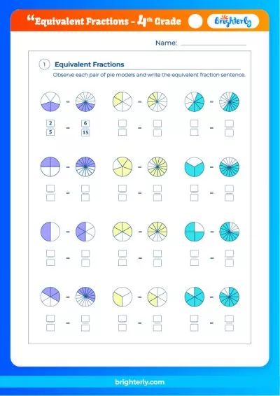 To find equivalent fractions, your child needs to repeatedly use multiplication and division. By practicing through the 4th grade equivalent fractions answers worksheets, they refresh times tables knowledge and improve number sense, which benefits not only fractions but also broader math learning.