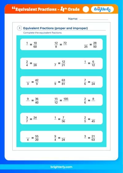 Each equivalent fractions worksheets grade 4 comes with an answer key, so your child can quickly check their work and see where they might need to pay more attention. This instant feedback enables them to learn from mistakes immediately. It also gives you an easy way to track progress without having to solve the problems yourself.