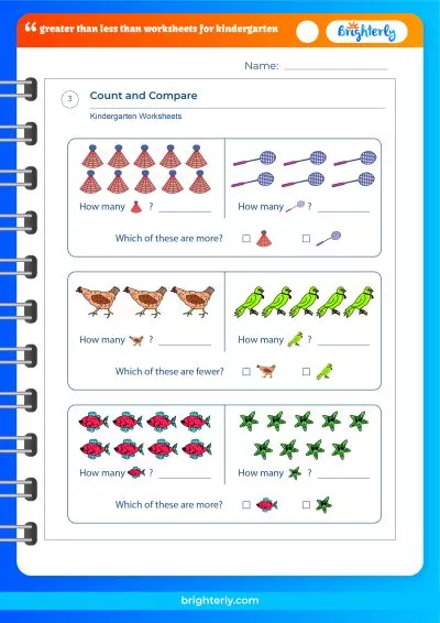 More or less worksheets for kindergarten pdf are an excellent way for kids to practice the mathematical concepts of greater than less than. They can assist children in understanding the link between numbers and quantities. At the same time, they’ll help boost children’s logical thinking, counting skills, and grasping power.