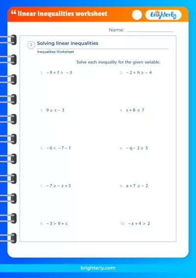 Numerous linear inequalities worksheets are available in PDF format and may be downloaded by students for free and used for practice and learning. In addition, printable linear inequalities worksheet answer key will ease the stress of parents teaching and guiding their kids every time since they will learn to use the worksheet and master inequalities themselves.