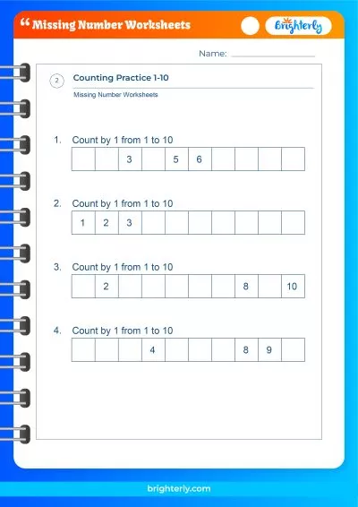 Brighterly is an online learning platform for kids. Its tutors teach how to do elementary math. Tutors use worksheets to help students understand math better and gain a solid foundation in the subject. A missing numbers worksheet contains activities designed to help students learn how to count and identify any numbers missing from the number sequence. Children will continue to build on their prior knowledge of numbers.