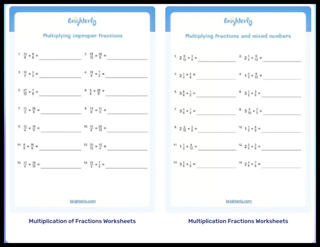 Once your kid has completed their multiplying and dividing fractions worksheets with answers PDF, they can try out our practice math problems. These practice tests mimic the real exams your child will encounter in school, preparing them for tests effectively.